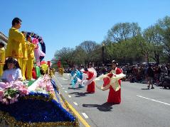 经历了几天的阴云,美国首都华盛顿阳光明媚、碧空如洗,到处洋溢着春天的气息,随处可见的盛开的樱花吸引了如织的游人,据樱花节文化活动的举办者估计,有一百万来自世界各地的游客前来观赏樱花,其中最受关注的樱花节游行更是吸引了十几万人观看。除了现场的观众外,华府ABC电视台的现场直播使许多华府和邻近的马里兰州和弗吉尼亚州的居民也看到游行的盛况。