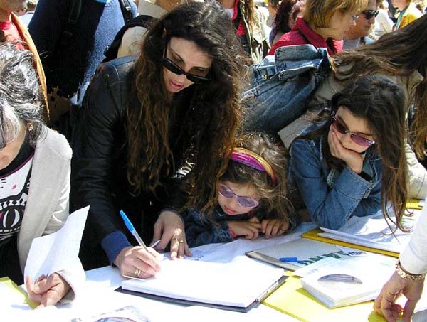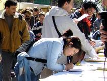 ![]() 大学生签名声援法轮功 | ![]() 小学生签名声援法轮功 | ![]() “先生,我可以签名吗?” |