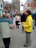 2005年4月9日星期六,来自英国南方肯特市的法轮大法学员在历史古都坎特伯雷市中心举办活动,向当地的居民介绍法轮大法以及免费教功班等信息,以及唤起民众关注仍在中国持续发生的对法轮大法的迫害。