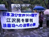 上午在日本大阪地方法院门口摆出展板并且打出横幅。