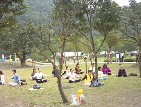 2005年4月17日,宜兰法轮功学员在风光绮丽、清流碧湍的绿色博览会所在地-宜兰县冬山乡“武荖坑风景区”炼功洪法。这项结合了自然生态、运动休闲、健康环保的博览会,已连续数年举办,闻名遐迩。今年该活动自3月12日至5月8日,展览期将近两个月,每天都吸引许多来自台湾各县市的游览车载满游客前来参观。