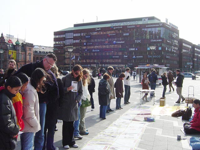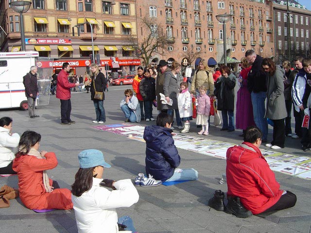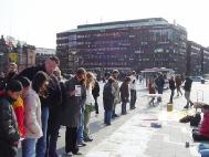 第三天,在哥本哈根市中心进行讲真象,中国使馆前发正念,除邪恶等正法活动。