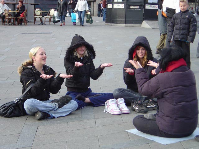 尽管天气非常寒冷,学员们仍然照常炼功、发正念并向众多的过往行人发放传单和讲清真象。这一天是星期天,广场上过往的行人络绎不绝,人们看到酷刑展时,对江氏集团如此残暴的对待这些手无寸铁的修炼群众感到震惊和不理解。人们纷纷主动在征签表上郑重的签下他们的名字,表示他们对学员的支持和同情及他们要求制止迫害的愿望。行人大多是意大利民众,也有不少外国游客。有两位来自希腊的旅游者主动索要希腊文的真象资料。