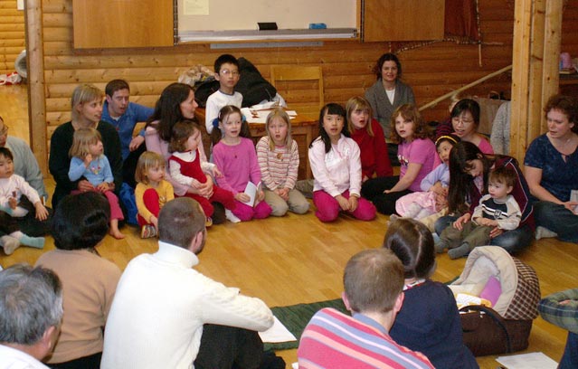【明慧网2005年4月2日】复活节,北欧部分法轮功学员在斯德哥尔摩集体学法。小弟子们也欢聚一堂,游戏,唱歌,做各式各样的法轮、精美的莲花;读《洪吟》,在早春和煦的阳光下炼功,追逐游玩,大人小孩无一不度过了一个难忘的假日。下面是几个小花絮。