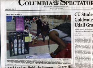 ![]() 哥伦比亚大学学生校报头版报道反酷刑展 |