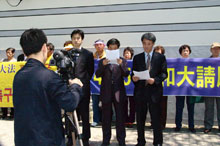 2005年4月25日上午,部份韩国首府汉城地区的法轮功学员来到中国驻韩大使馆前,举行新闻发布会,纪念中国大陆法轮功学员“4.25”大上访六周年。