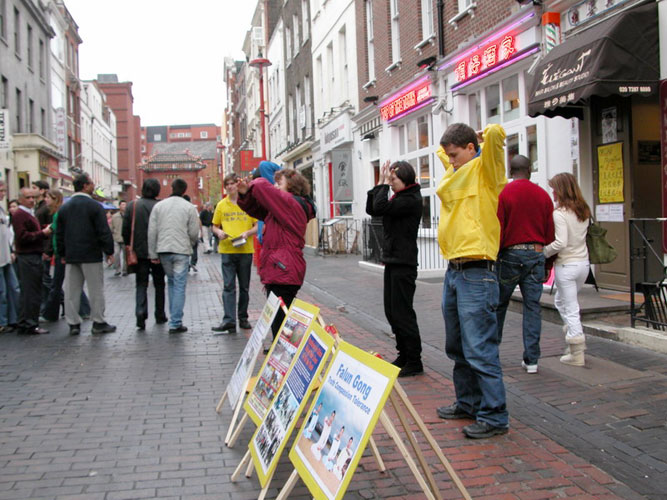 一位曾在中国做律师现在移民英国的中国男士告诉法轮功学员,他深知在共产党统治下的中国无真正的法律可言,中国共产邪党对法轮功的迫害是非法的、更是不人道的。一位曾在中国生活过、并在伦敦教中文的英国人和学员聊了很长时间,说他很了解共产恶党是为了自己的权力什么坏事都能干得出来的,对法轮功的迫害就是如此。一个中国男孩接了真象资料后在电视机前停留了很久,而后他的目光柔和了很多。