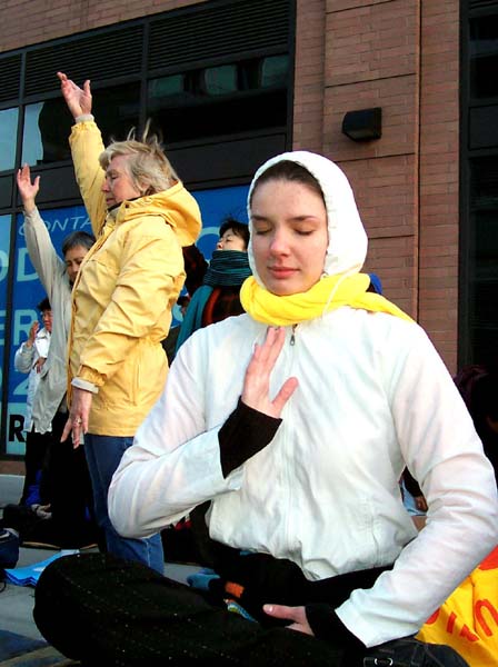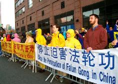 ![]() 学员在纽约中领馆前炼功 | ![]() 学员在纽约中领馆前发正念 |