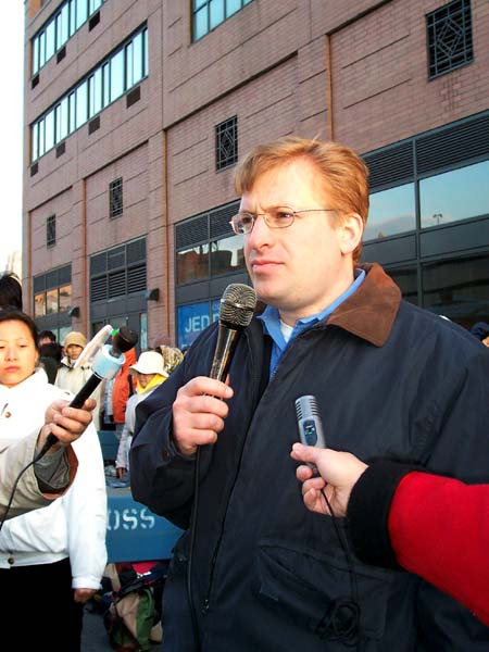 他说,今天我在代表中共政权的领事馆对面这里呼吁:中共立即停止对法轮功的迫害。他说,江泽民政权已彻底退出中共政治舞台;胡锦涛政府没有任何借口说“江”在背后控制,而不停止对法轮功的迫害。