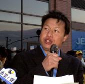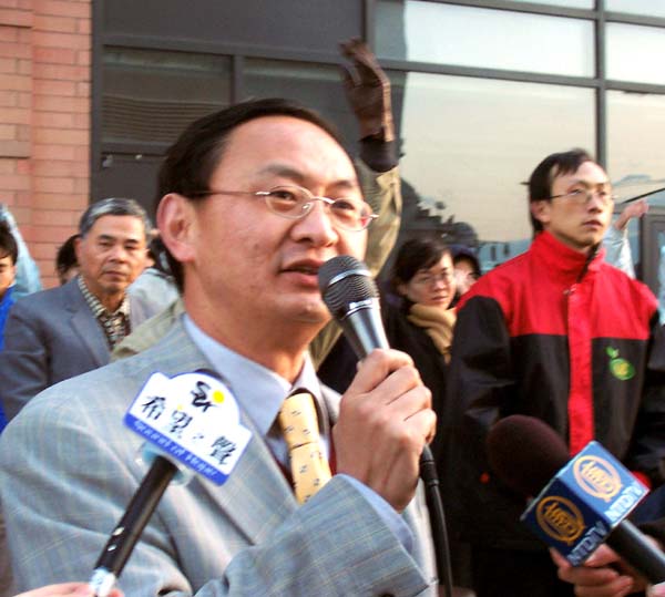 ![]() “民主中国阵线”主席费良勇 | ![]() “中国和平”主席唐柏桥在发言 |