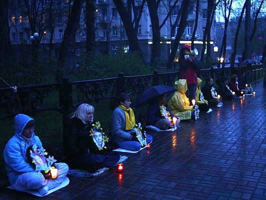 【明慧网2005年4月28日】2005年4月25日,乌克兰法轮功学员在乌克兰基辅市(Kiev)的中使馆前举行了静坐活动,纪念1999年
