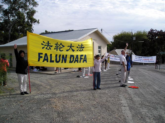当法轮功学员听说南澳阿德雷德那个地区(也是澳洲外长唐纳的选区)这段时间有很多大型的节日活动,包括十万人左右参加的当地一年一度最大的赛马活动,于是百余名澳洲学员纷纷利用长周末放假的时间从澳洲的悉尼和墨尔本等不同地区驱车十多个小时,赶到南澳去,利用这个大好的时机向当地人民讲清法轮功真象。到达之后,学员分散成不同的小组,到附近不同的地区和城镇去参加当地的节日活动,讲真象。7-8个学员一组,有的炼功,有的发资料,有的解说并征集请愿信签名,忙得不亦乐乎。短短几天的时间里,就在人口稀少分散的南澳地区征集到了1300多份请愿信签名,并递交给了外长唐纳的选区办公室。