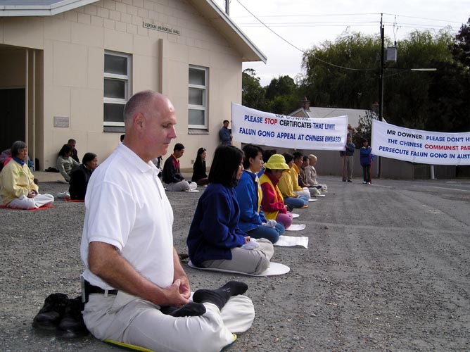 一位当地餐厅的老板,白天就看到学员在小镇上的路旁炼功了。当他在路上再次遇到发资料的学员时,就再也忍不住他的好奇心了,请学员给他讲讲到底是怎么回事。学员告诉他什么是法轮功,过去几年中国法轮功学员所遭受的迫害以及现在这样的迫害已经延伸到了澳洲这样的自由国家,比如澳洲外长在过去三年中由于受到中共政治和经济方面的压力,每个月都签发证书不允许法轮功学员在驻澳洲的中国大使馆外面举任何的横幅和标语。