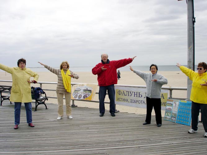 纽约布碌仑8大道华人社区附近的华人炼功点建于97年春季,到今年也有9个年头了。冬寒夏暑不间断,这里的华人已经熟悉了什么是法轮功的功法。正是“果然有缘能悟者,俩俩相继而来,入道得法”(《精進要旨》—悟)。这里有快奔70的老者,也有怀着宝宝的年轻妈妈,有只读过5年书的大妈、大姐,也有电脑专家、在美国拿到博士的学者,有在街上卖水果的,有退休的老人,有在私人诊所工作的,有在政府单位工作的,有在餐馆打工的,也有自己当过老板的。