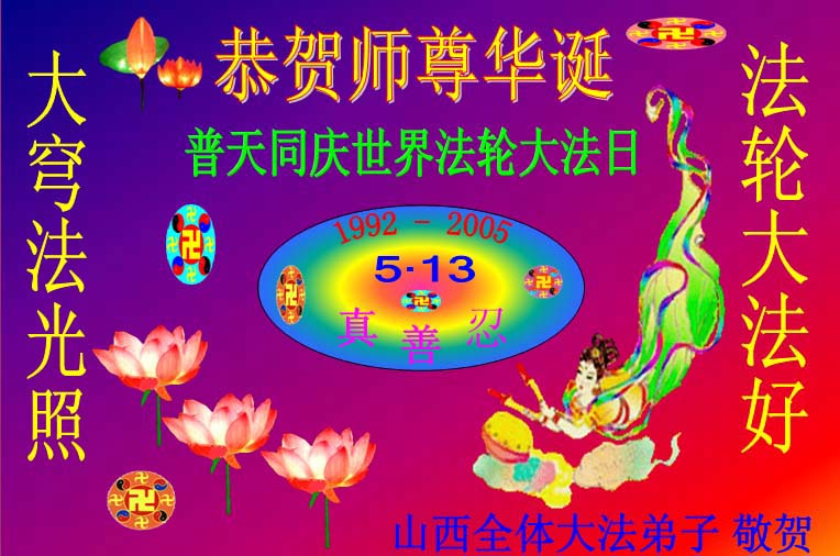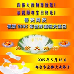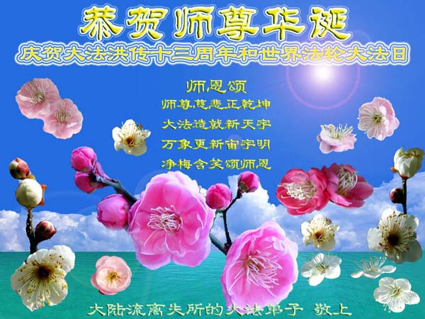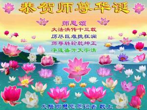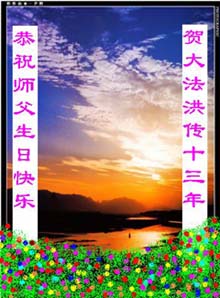 <英文版: http://www.clearwisdom.net/emh/articles/2005/5/14/60765.html>大陆大法弟子恭贺师尊华诞暨法轮大法洪传十三周年(2)