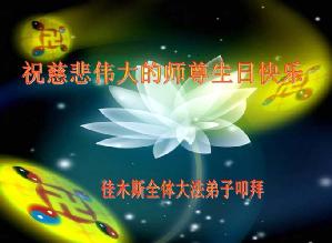 敬祝我们无限景仰、无限感激、无限崇敬的无法以任何语言所能表达、所能赞颂的师尊、生日快乐!敬祝我们无限慈悲的师尊正法必成!