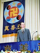 目前最大的一个障碍就是在这种中共邪党文化的造就与作用下使众生看不到真相,甚至不想听。在这样的情况下,《九评》起了这个作用,叫人看清了中共的本质。看清了这个邪恶的本质,知道了中共邪党变异了文化,有很多人就不再说他相信中共邪党了,有很多人就不再相信这个流氓政府了。我们不是以搞政治为目地、为出发点的,我们也不想要常人的那个政权,我们是在救人!如果中共还在垂死挣扎中变换着招数干扰众生得度,那我们还有别的办法,佛法无边!(热烈鼓掌)