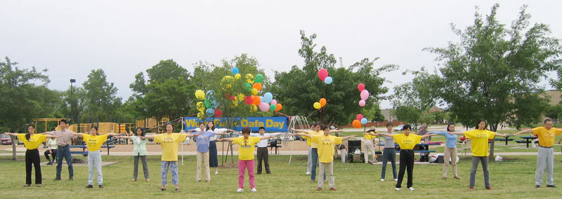 今年已是达拉斯法轮功学员六迎世界法轮大法日,从每年来参加庆祝活动、集体炼功的情况看,修炼人越来越多。