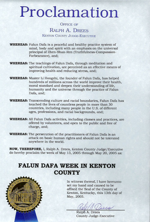 因此,现在,我,肯顿郡首席长官Ralph A. Drees 宣布:2005年5月13日至2005年5月20日为
