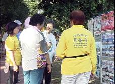 5月15日周日,法轮功学员在人潮众多的吉隆坡的皇后公园庆祝法轮大法洪传十三周年。