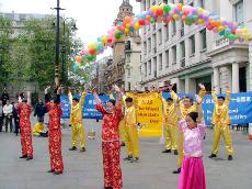 英国大法弟子2005年5月14日在伦敦市中心举办了庆贺第六届世界法轮大法日的活动。