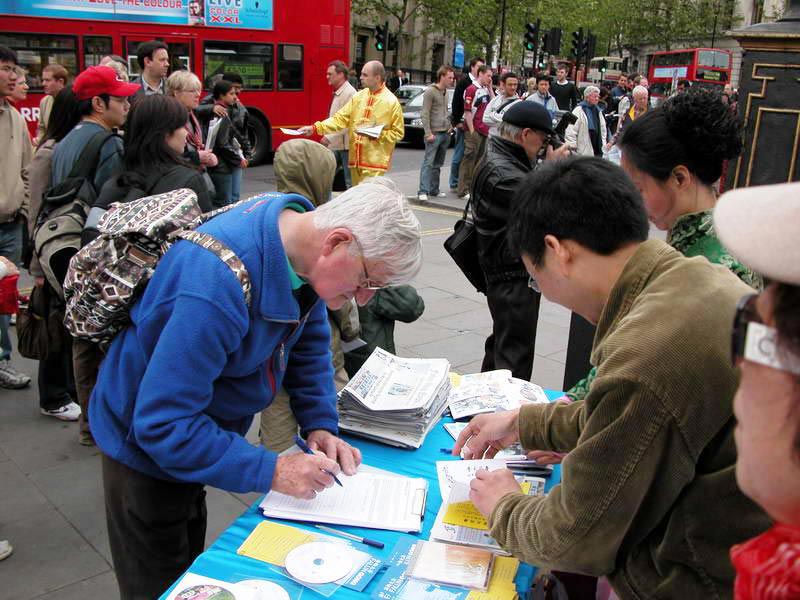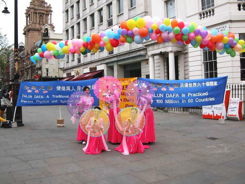 【明慧网2005年5月16日】英国大法弟子2005年5月14日在伦敦市中心举办了庆贺第六届世界法轮大法日的活动。