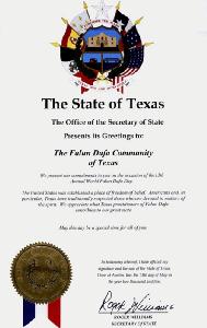 美国是一个信仰自由的国家。美国人民特别是德州人民具有尊重精神信仰的传统。我们感谢德州法轮大法学员为美好的德州作出的奉献。