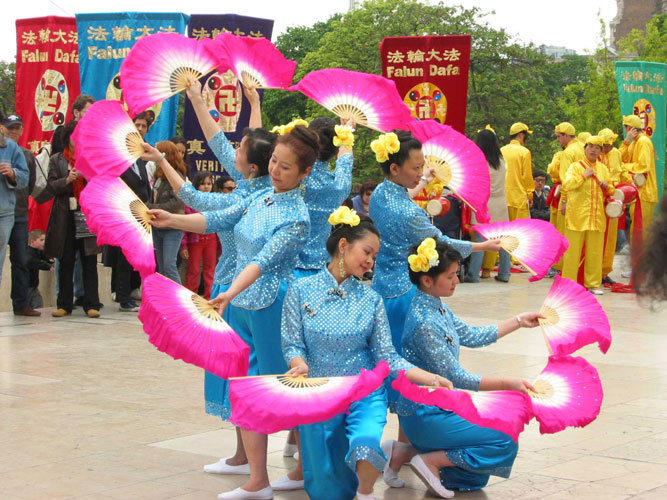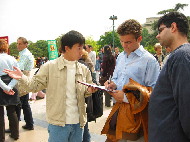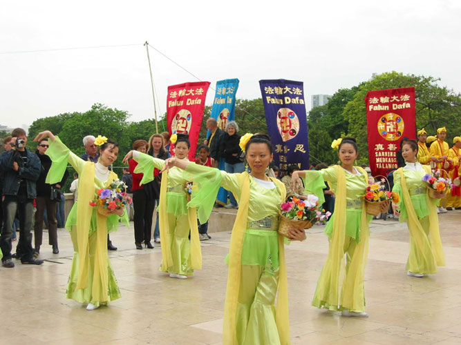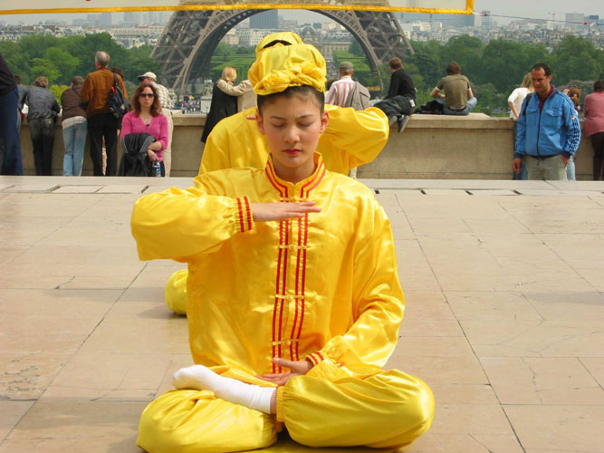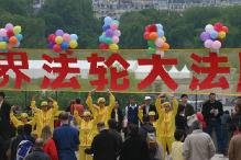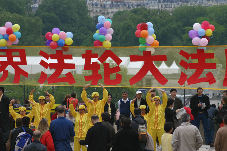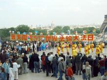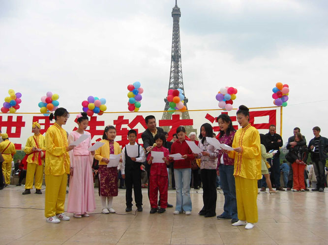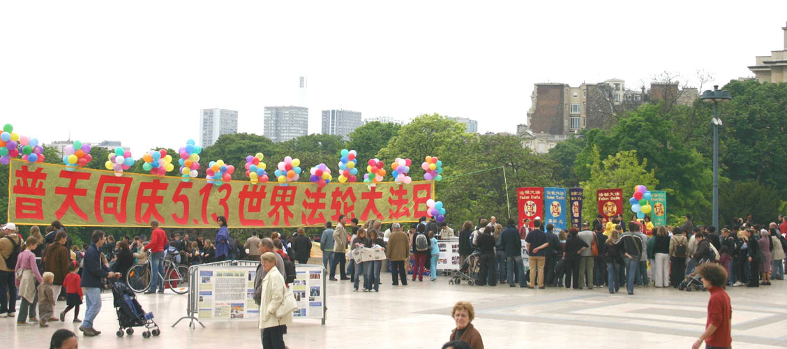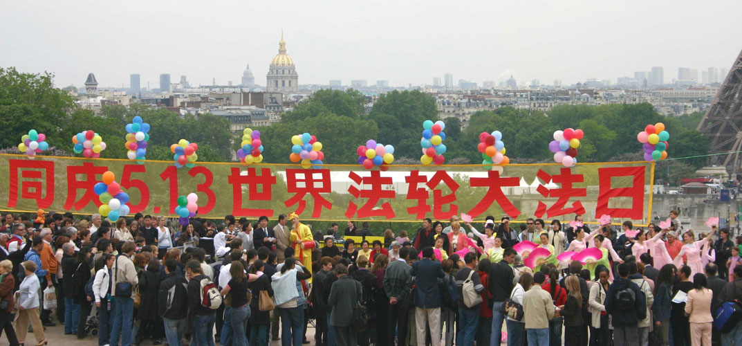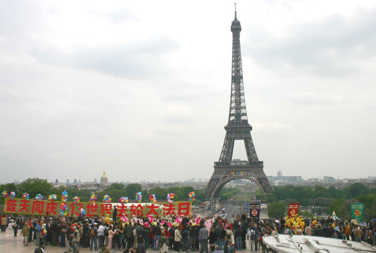 【明慧网2005年5月17日】2005年5月15日,法国大法弟子来到与埃菲尔铁塔隔河相望的Trocadero广场,与全世界78个国家的大法弟子共同祝慈悲伟大的师父生日快乐、欢庆法轮大法在世间洪传13周年。