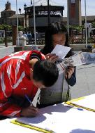 ![]() 一对中国兄妹得知法轮功在中国遭迫害的真象后,也拿起笔签名声援 |