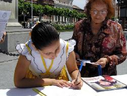 ![]() 这位祖母签名后叫孙女也来签名 |