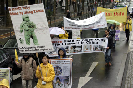 游行队伍中的真象横幅
