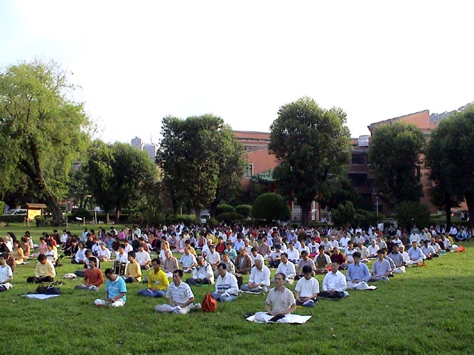 一位老太太说,一开始是自家楼下有人在炼法轮功,她下去跟着学几个动作就觉得身体突然变得一身轻,那时她就决定要一直炼下去,绝对不能放弃。