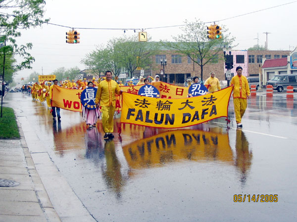 【明慧网2005年5月21日】为了庆祝五月十三日的法轮大法日,同时能更广泛的将法轮大法的美好介绍给密西根州民众,今年美国密西根州法轮功学员报名参加了五月十四日周六在密西根首府兰莘所举办的第十五届密西根游行。
