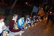 于乌克兰法会期间,为了纪念在中国大陆被邪恶中共政治集团迫害死的2000多名大法弟子,5月21日晚,在基辅市中心的中使馆前近百名来自乌克兰大法弟子和俄罗斯、波罗的海等海外弟子一起進行了烛光守夜活动。