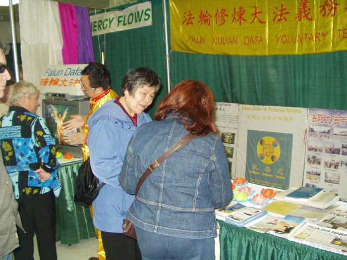 该博览会是以身体、心理及精神健康为主题的,我们也主要介绍法轮功是什么以及法轮功的美好,可我们发现相当多的人都知道法轮功在中国遭受的迫害,几乎一半的人学功后都会问,这么美好、美妙的功法为什么在中国会遭受迫害,他们感到困惑。我们告诉他们法轮功所信仰的“真、善、忍”与共产党的“假、恶、斗”根本上是对立的,中共不仅想控制天、地、人,还想控制人的思想。加拿大的人民绝大多数对中共没什么好感,听到真象后更觉得它愚不可及。