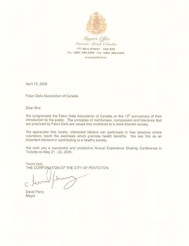 我们为法轮大法传世13周年向加拿大法轮大法协会表示祝贺。法轮大法实践真善忍的准则有助于使我们的社会更加宽容。