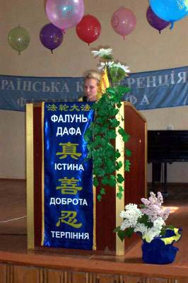 22日在基辅市中心,举行了大游行。队伍前面的法轮功学员举着“真、善、忍”横幅,后面是各种国家语言的大法横幅。身穿白色衣服的法轮功学员举着在中国被迫害致死的大法弟子的照片,肃穆庄严。