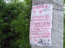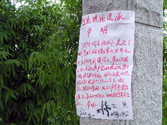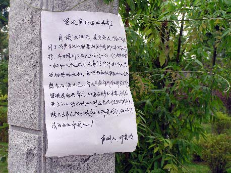 经过此地的晨练民众发现声明后不少都驻足观望,大部份人表情严肃,声明的出现触动了他们的心灵深处,并引发了他们的思考。特别是张贴声明者还在声明下面放置了一本《九评共产党》小册子和一张《九评共产党》内容的光碟,不少人拿起小册子观看。