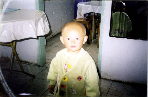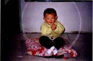 那张坐着的照片就是1999年中国传统新年,同修到他家看他很爱学法炼功,就拿来相机给他照相,几张照片都神奇的显现出光圈,那张站着的照片是他4岁那年的夏天,这时的小恒一学法更认真了。5--6岁时坚持炼静功,有时腿疼得直流泪,也不吱声,有时爸爸看他难受的样子就说你把腿拿下来吧,恒一摆摆头,没出声,就这样流着眼泪炼完了静功。