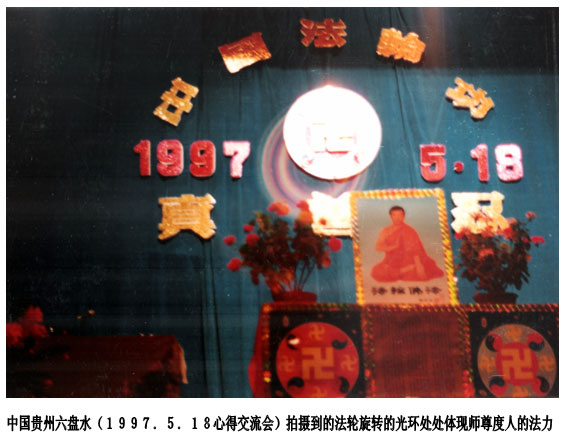 中国贵州六盘水(1997年5月18日心得交流会)拍摄到的法轮旋转的光环