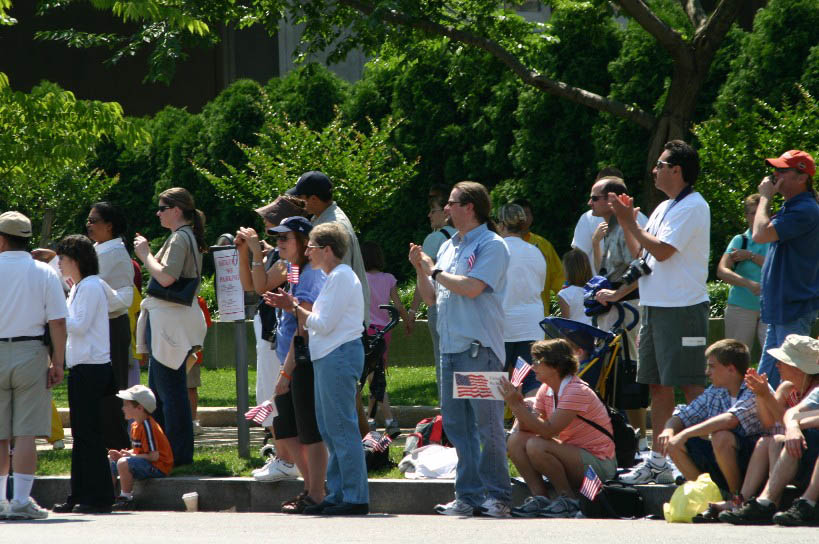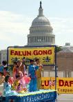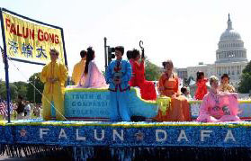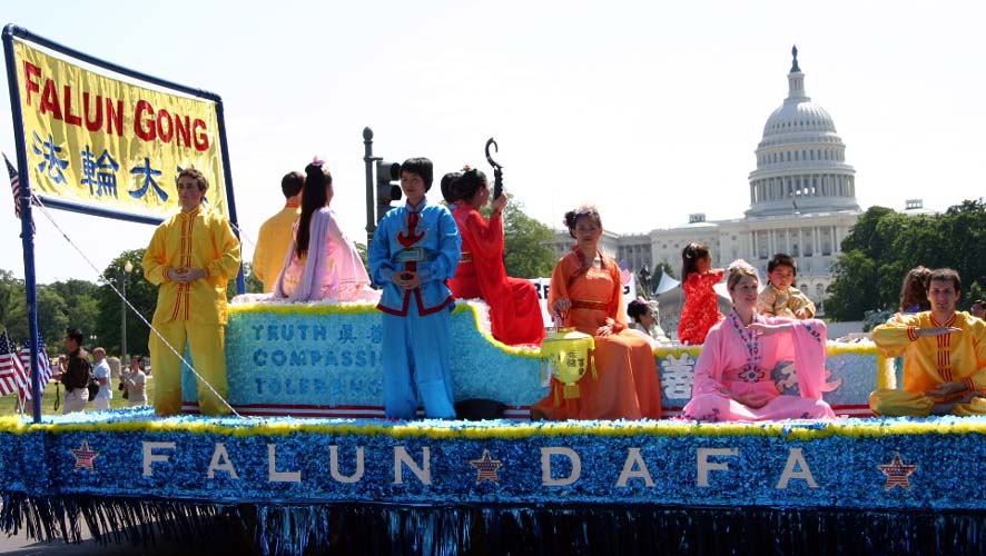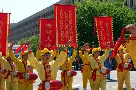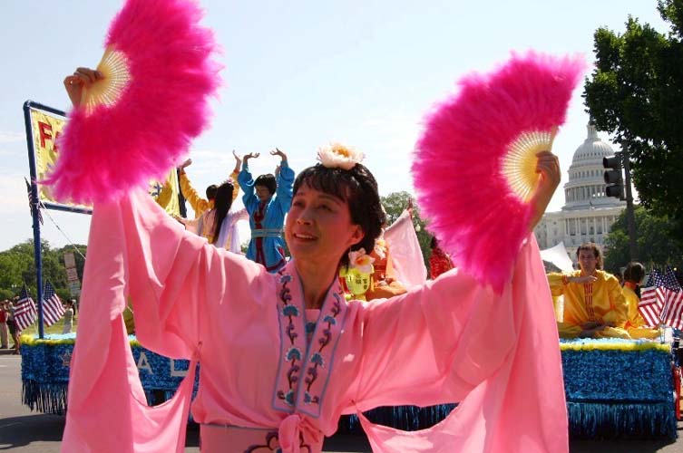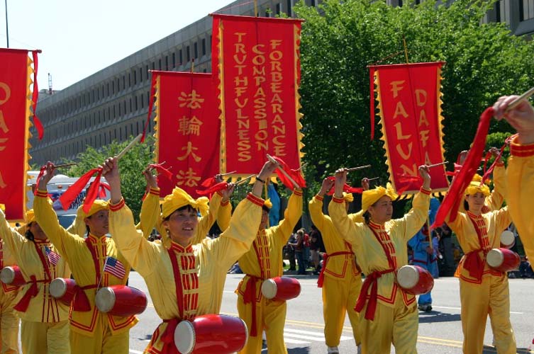 这些法轮功学员中有大学教授、医生、电脑专家、家庭主妇、学生和退休老人。他们以乐观祥和的精神风貌、亮丽的服装,以及优美的舞姿与功法演示把真善忍精神和中国传统文化传入西方社会,自1999年4月樱花节以来,法轮功学员的游行队伍活跃于华府各种社区庆祝活动和节日游行中,成为一道亮丽的风景线。