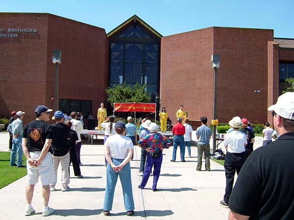 大会活动上午10时开始,太极、气功、武术等各参加团体轮流上台表演,以武会友互相切磋观摩。法轮功的功法演炼是最后一个节目,3位学员在台上展示美好祥和的功法时,台下群众都跟着学习,当学员说明法轮大法是以同化宇宙最高特性真、善、忍为根本,以宇宙最高特性为指导,按照宇宙演化原理而修炼,修的是大法大道时, 观众纷纷索取介绍资料、询问炼功点。