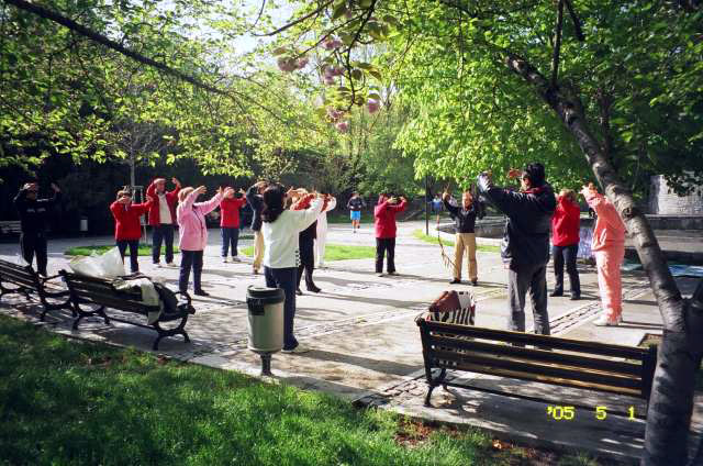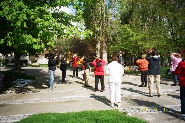 ![]() 集体炼功 | ![]() SHOWTV记者在录像。 |