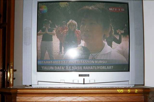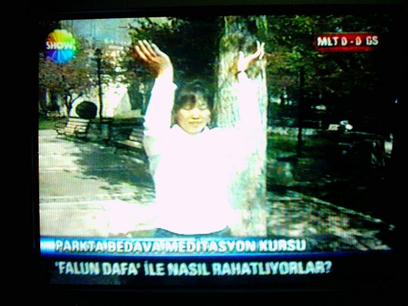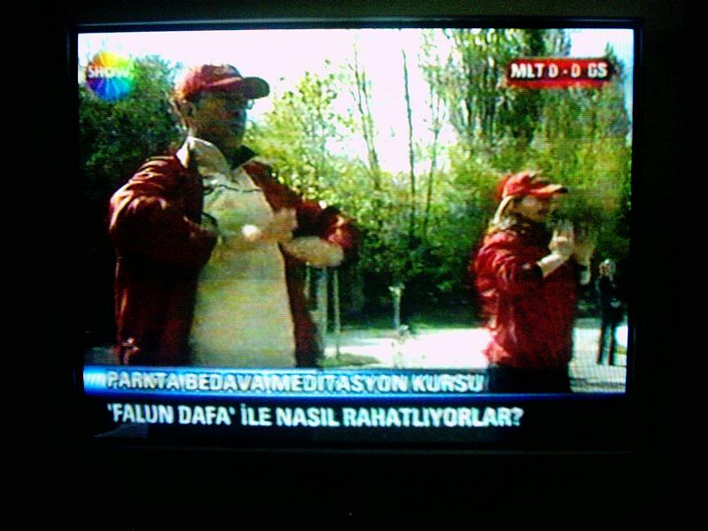 清晨,SHOWTV电视台的记者采访了早上在公园里炼功的大法弟子,并于当天晚上在新闻联播时间播放了采访节目。节目中,部份大法弟子谈了自己的修炼体会,并介绍了法轮功功法。联系电视台的土耳其人大法弟子说:她半年前没炼功时55岁,现在她看起来像45岁,浑身有使不完的劲儿。她希望让全土耳其的人都来学大法,请通过电视把这个消息告诉我们国家的所有人。