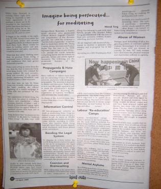 悉尼大学的法轮大法学员为了把即将在大学举办的法轮功真象演讲会的消息告诉人们,写文章向Honi Soit投稿,文章的题目叫做“设想一下因打坐炼功而遭受迫害”。Honi Soit的编辑詹姆斯(James Greenwood)看了稿件后非常震惊,他说:“这是一件非常严重的事情,谢谢你们的投稿,我们一定刊登。”