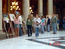 2005年4月25日,美国印第安纳州的州府——印第安纳波利丝迎来了“坚忍不屈的精神”画展,让印第安纳州的人们有机会可以亲眼目睹40多幅珍贵的画作,更深入的了解法轮大法洪扬海内外,以及法轮功学员在中国遭受迫害的真实一幕幕!印第安纳州政府大楼里观看画展的人们此次画展是在印第安纳的州政府大楼里举办,为期一周。