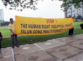 【明慧网2005年5月7日】2005年5月6日,印尼法轮功学员在中领馆前和平请愿,呼吁中共立即停止