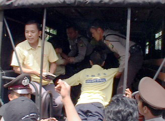 法轮功。学员遭到警察粗暴对待,六位法轮功学员被强行抬上警车,带回警局。这是印尼警察自4月23日以来第三次对法轮功学员合法的和平请愿活动的粗暴干涉,严重违反了印尼的法律,损害了印尼作为一个民主国家的形象。