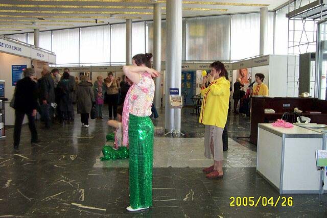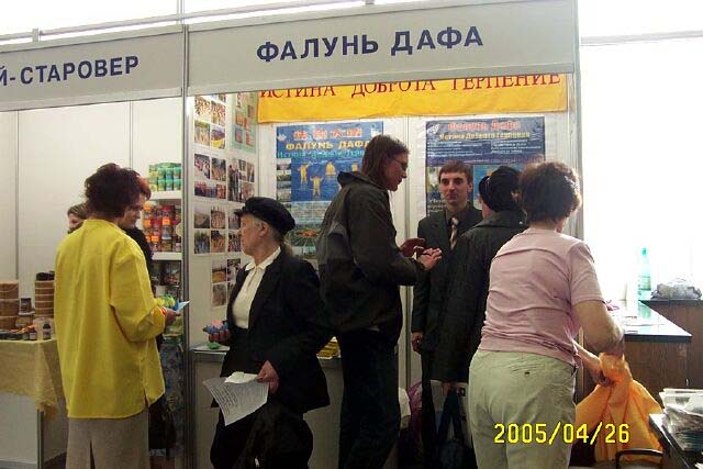 这次“莫斯科—健康城市”博览会短短两天,却使很多人了解了法轮大法。到这里参观的有不少专家学者、医生、军官等各界人士,也有很多市民,大家都从不同角度想了解法轮大法,几乎人人都主动索取简介和真象资料,光盘、书签、贺卡和纸莲花备受欢迎。有的人听完学员介绍或看了五套功法演示当场表示要学功,不少人记下了炼功点的地址。也有人提出不解的问题,如:这么好的功法中共为什么要迫害?当学员告诉他,因为中共的本质是邪恶的,它鼓吹的是无神论,信的是假恶斗,所以从根子上它就是反对真善忍的,人们听后纷纷点头认可。