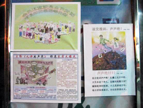 2005年6月4日,太原主要街道之一五一路上,出现了张贴的“九评”、三退宣传画和三退声明。